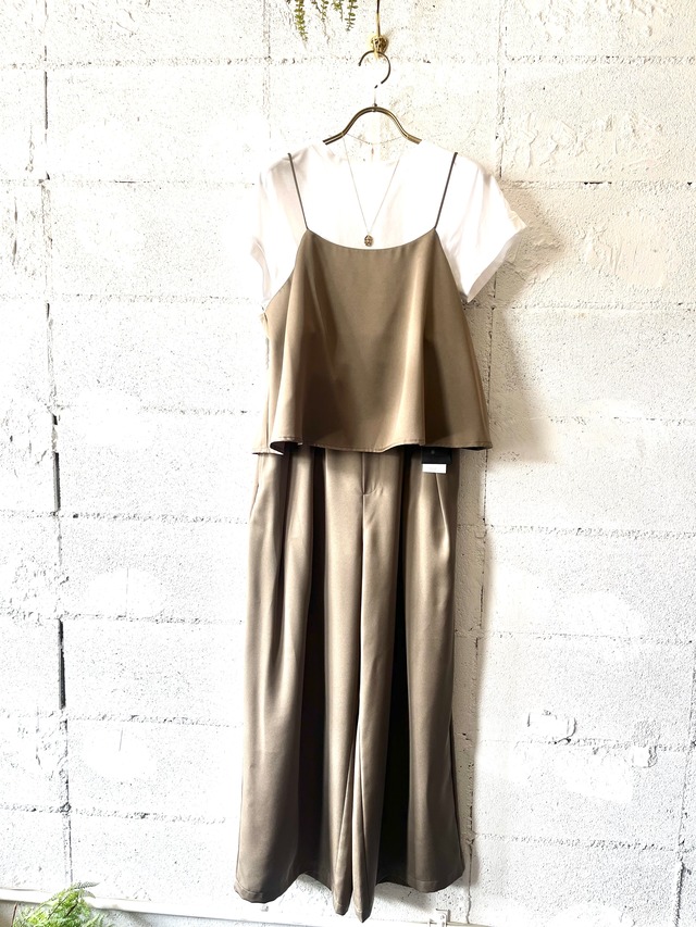 # サテンキャミセットアップ □サイズ F □カラー カーキ □素材 ポリエステル 100% □価格 ¥19,800 +税 エレガントなマットサテン生地を使用したキャミとパンツのセットアップ。滑らかな肌触りが心地よく、ドレッシーな印象を与えるアイテムです。サテン特有の光沢が、カジュアルなシーンでも一際目を引く存在感を演出します。 キャミはシンプルながらも女性らしさを引き立てるデザインで、パンツはリラックス感がありつつもきちんと感があるシルエット。お出かけから特別なイベントまで、幅広いシーンで活躍すること間違いなしです。カーキ、ブラックの2色展開で、あなたのスタイルに合った色をぜひお選びください。この春夏、ワードローブに加えて特別な一着にしてみませんか! # サテンキャミセットアップ □サイズ F □カラー ネイビー / ブラック / ピンク □素材 ポリエステル 100% □価格 ¥19,800+税込 エレガントなサテン生地を使用したキャミとパンツのセットアップ。滑らかな肌触りが心地よく、ドレッシーな印象を与えるアイテムです。サテン特有の光沢が、カジュアルなシーンでも一際目を引く存在感を演出します。 キャミはシンプルながらも女性らしさを引き立てるデザインで、パンツはリラックス感がありつつもきちんと感があるシルエット。お出かけから特別なイベントまで、幅広いシーンで活躍すること間違いなしです。ネイビー、ブラック、ピンクの3色展開で、あなたのスタイルに合った色をぜひお選びください。この春夏、ワードローブに加えて特別な一着にしてみませんか!