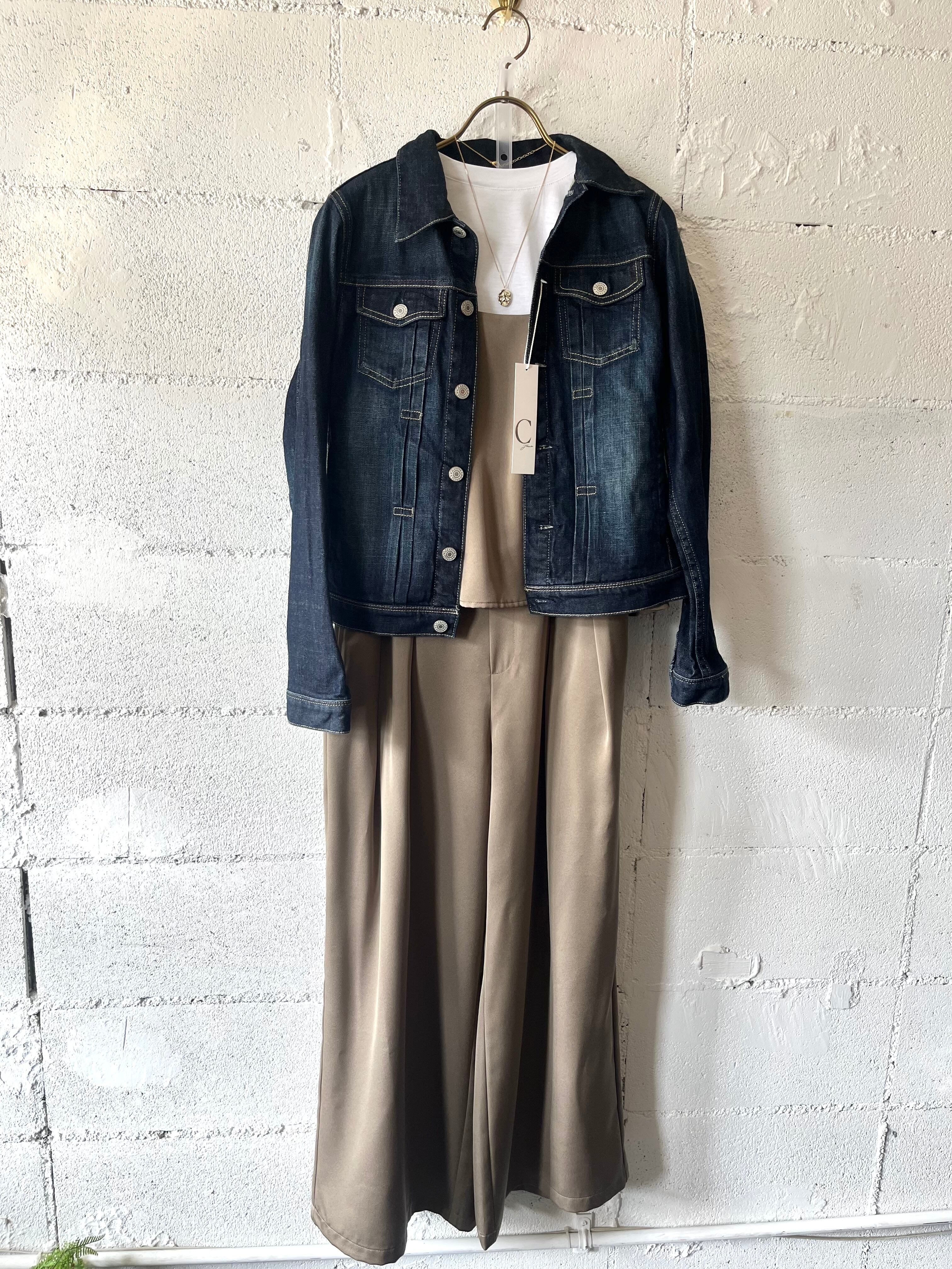 エレガントなサテン生地を使用したキャミとパンツのセットアップ。滑らかな肌触りが心地よく、ドレッシーな印象を与えるアイテムです。サテン特有の光沢が、カジュアルなシーンでも一際目を引く存在感を演出します。