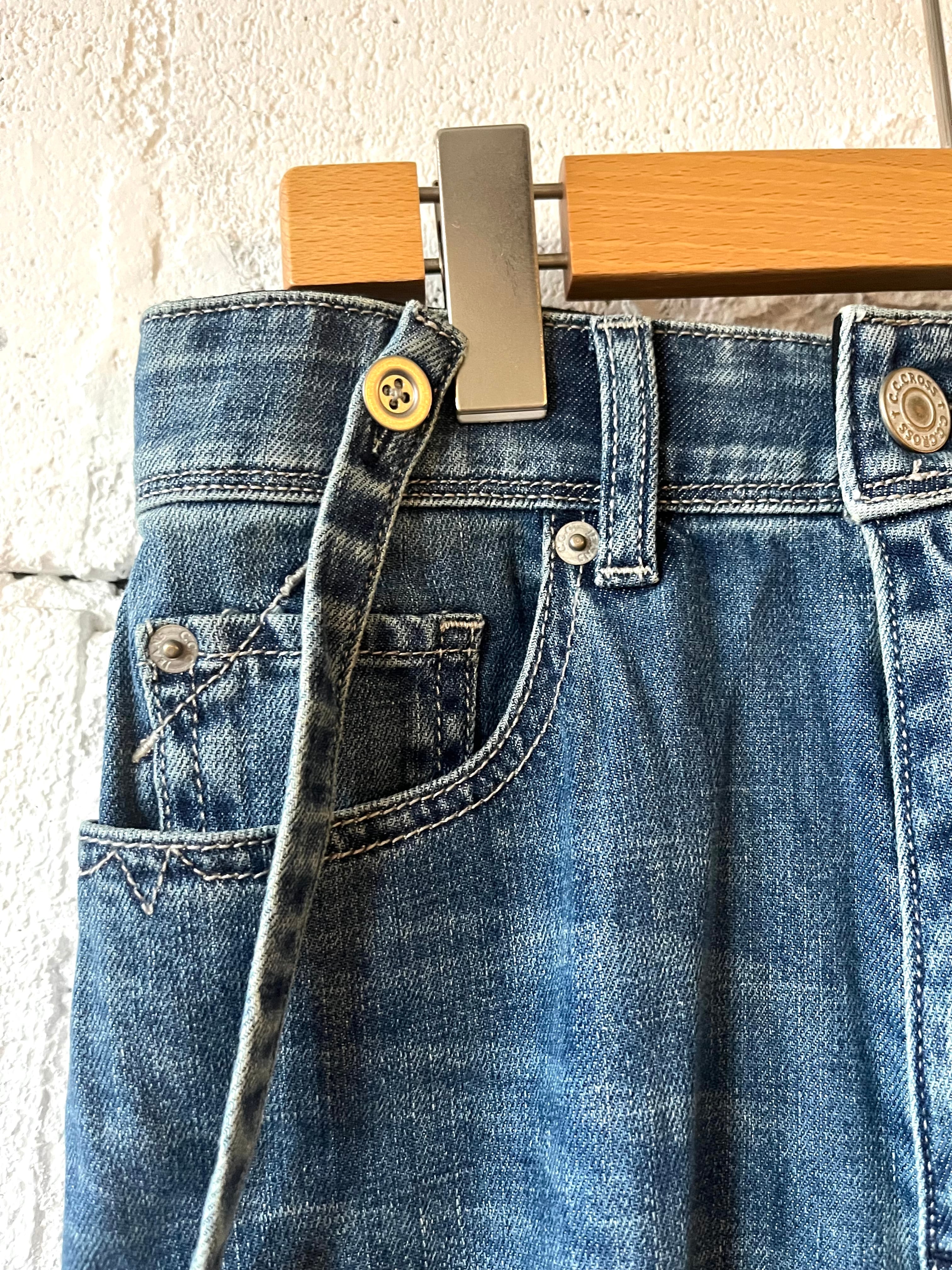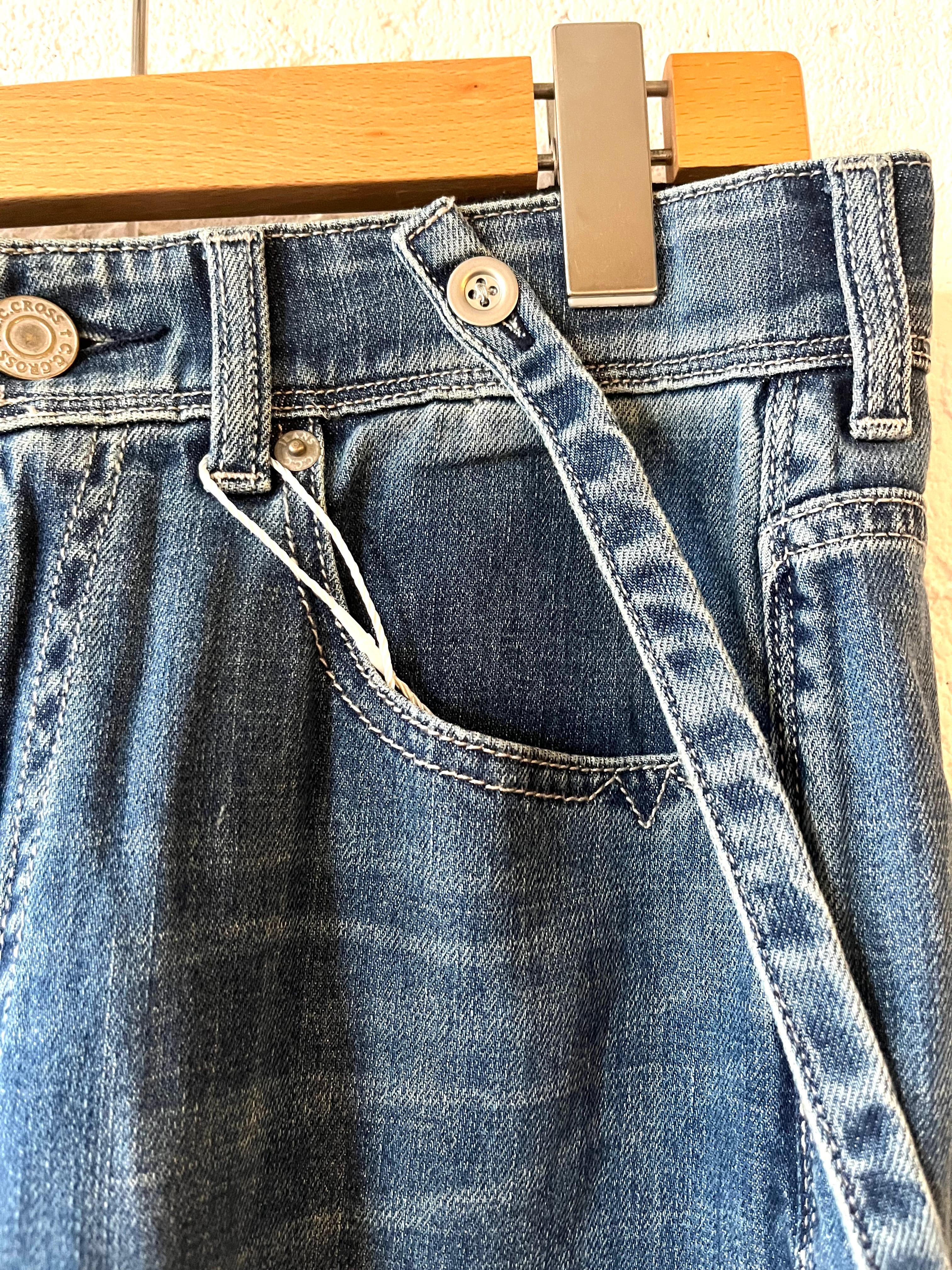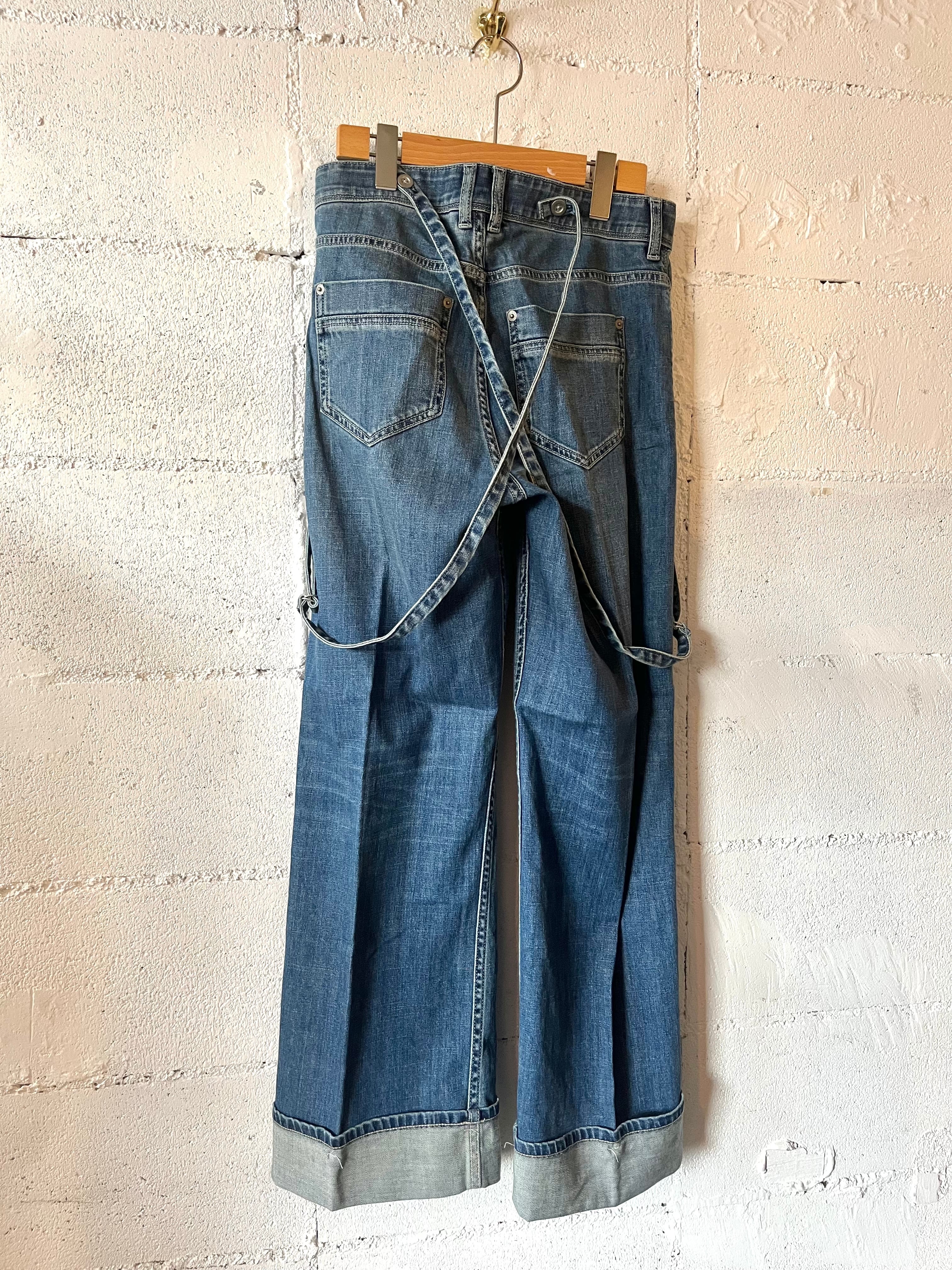サスペンダー付きロールアップデニムは、軽やかな落ち感が魅力のアイテムです。サスペンダーが付いていることで、カジュアルなスタイルながらもおしゃれな印象を演出します。柔らかなデニム素材が体に優しくフィットし、長時間の着用でも快適です。